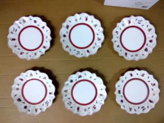 Elegante set di 6 piatti della linea Toy's Delight di Villeroy & Boch, perfetti per le festività natalizie. Composto da: 2 Piatti Piani 2 Piatti Fondi 2 Piatti Dessert - Design festivo con decorazioni a tema. - Bordo ondulato e dettagli curati. Nuovi mai usati