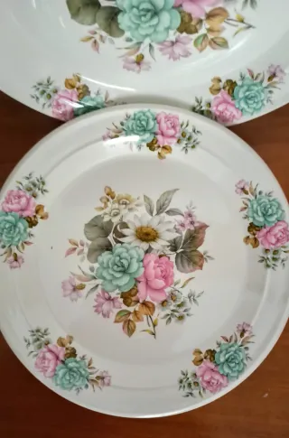 Vendo questo bellissimo servizio di piatti in porcellana ,CHURCHILL ,composto da 12 piatti piani 12 piatti fondi 12 piatti frutta 2 insalatiere. In perfette condizioni proviene da una mia collezione privata volendo ne ho 2 di servizi, prezzo del servizio è 280.00 euro piu costo di spedizione