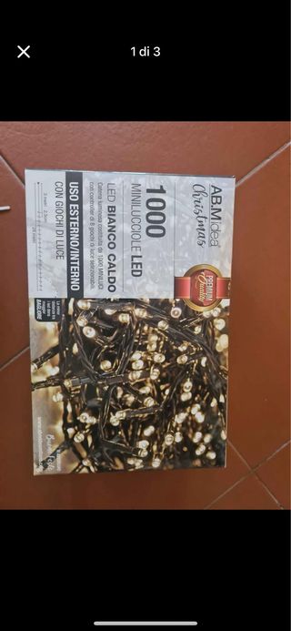 Catena luminosa per esterni/interni con 1000 miniluci LED bianco caldo. Ideale per decorare l'albero di Natale o altri spazi. - 1000 miniluci LED - Colore: Bianco Caldo - Uso: Esterno/Interno - 8 giochi di luce selezionabili con controller - Marca: AB.Midea