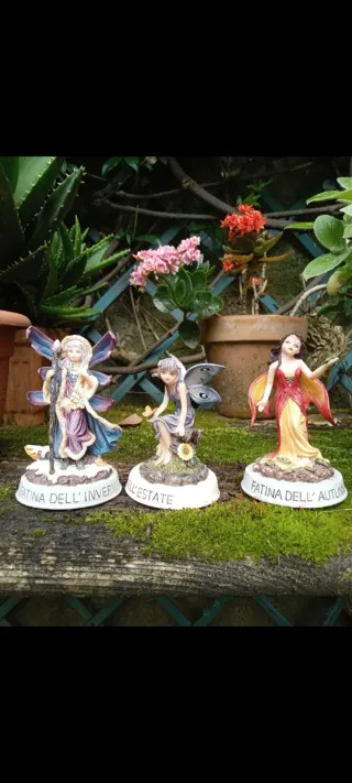Delizioso set di 3 fatine decorative, alte circa 8 cm. - Dettagli curati e colorazioni vivaci. - Perfette per aggiungere un tocco magico a qualsiasi ambiente.