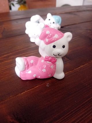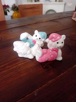 3 orsetti in ceramica rosa azzurro bianco.