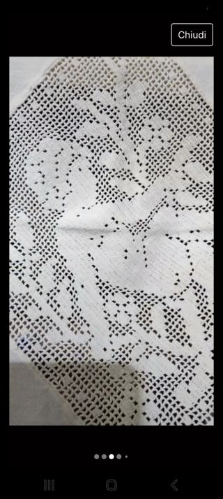 Tovaglietta con applicazioni a filet e ricami a punto gigliuzzo. Cucito a mano 86x93 cm contattami