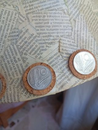 Paralume fatto con carta di giornali rinforzata, sughero ( tappi )e monete ( vecchie lire ).