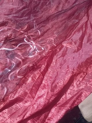Tre teli tenda Una un po sfilata bordo in basso Un altra strappo interno latetali. Documentato in foto Ognuna Larghezza 1.34 cm Lunghezza 2.90 cm dall asola dove va inserito il bastone. Asola 8 cm.
