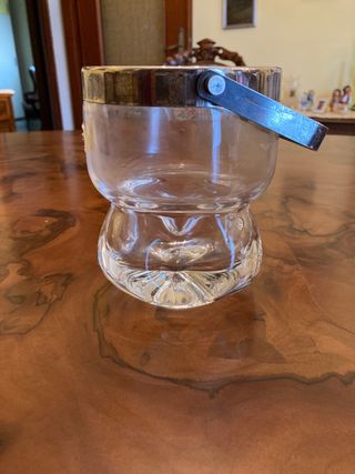 Porta ghiaccio in vetro pesante con bordura superiore e manico in silver anni ‘70