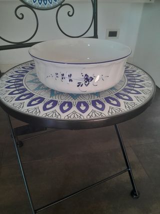 Centrotavola in porcellana Capodimonte dipinta a mano con motivo floreali. completa di piatto da portata. In perfette condizioni, mai usato
