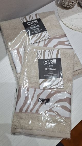 Bellissimi asciugamani Cavalli Home, morbidi e di alta qualità. Sono perfetti per aggiungere un tocco di eleganza al tuo bagno. - Set di 2 asciugamani. Ospite e viso . - Design zebrato beige. - In puro cotone.