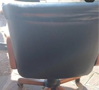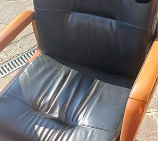 Bellissima poltrona vintage, ideale per aggiungere un tocco di stile retrò alla tua casa. - Struttura in legno pregiato. - Rivestimento in pelle sintetica nera di ottima qualità. - Design elegante e senza tempo.