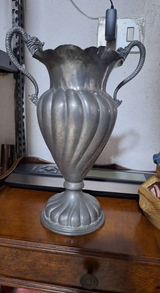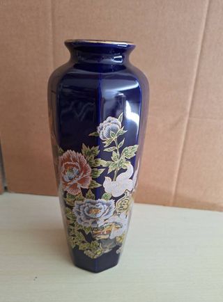 Bellissimi vasi, perfetti per decorare la tua casa! Sono due vasi, uno in porcellana blu con fiori dipinti e uno in metallo argentato con manici a forma di drago. Entrambi sono in ottime condizioni ed hanno un design elegante e raffinato. - Uno è un vaso di porcellana a forma ottagonale. - L'altro è un vaso di metallo con manici decorati.