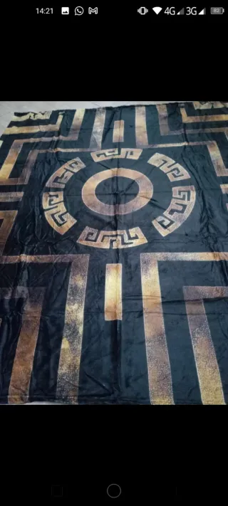 Morbida coperta con un design ispirato all'arte greca, caratterizzata da un'elegante combinazione di colori nero e oro. Misura 130*150. Spedizione per l'Italia solo con InPost - Motivo centrale con volto e decorazioni dorate. - Bordi decorati con greca. - Tessuto in pile soffice al tatto.