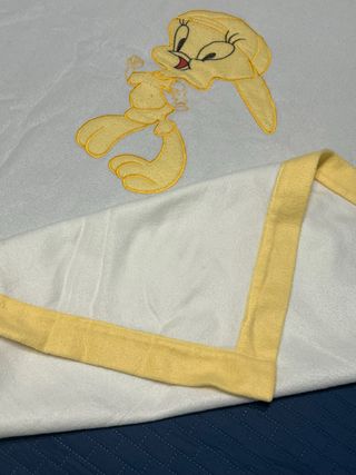 Morbida copertina con personaggio Titti. - Personaggio Titti ricamato. - Bordatura gialla. - Tessuto in pile.