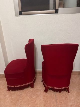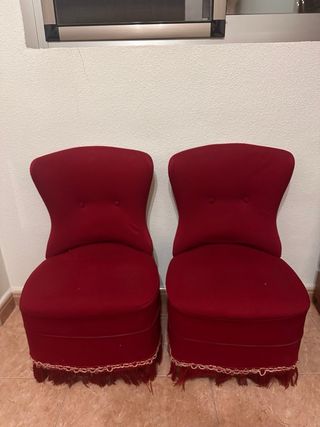 Coppia di poltroncine antiche in ottimo stato: tessuto senza macchie, imperfezioni o odori. Piccole e leggere (+-5Kg 54x54x74). Offro spedizione o trasporto nelle vicinanze di Pineda de Mar. WhatsApp 645 295 739.