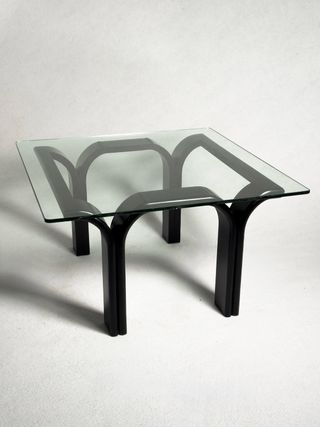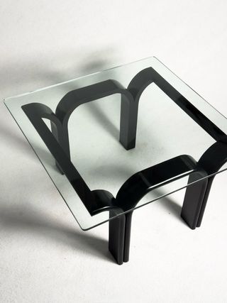 Prezzo unitario. 2 unità disponibili. Bella coppia di tavolini centrali o ausiliari in stile vintage. Perfetti per aggiungere un tocco retrò alla tua casa. - Design scultoreo con struttura curva. - Superficie in vetro. - Base in legno laccato nero. Instagram: @bartuistupinod. vintage retro design sedia poltrone aparador vitra fase Guillemaus, AG Barcelona, Gae Aulenti, Magistretti, Lupella, Cassina, Knoll, Vitra, Fase Metalarte, Gastone Rinaldi, Pop, space age, design, retro, tavolino, ausiliario, Tramo, mid century, modernista, organico, art deco, art nouveau, tavolo