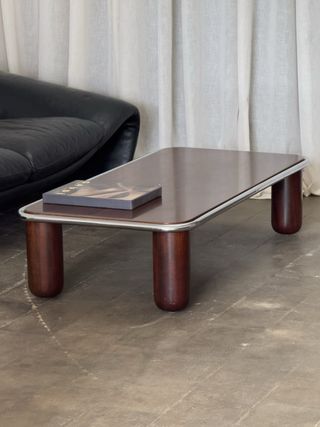 Elegante tavolo da salotto in legno e metallo con un design vintage nello stile degli anni '70. - Piano in legno con finitura scura. - Struttura tubolare cromata sul bordo. - In buone condizioni con lievi segni d'uso. Instagram: @bartuistupinod vintage retro design sedia poltrone credenza vitra fase Guillemaus, AG Barcelona, Gae Aulenti, Magistretti, Lupella, Cassina, Knoll, Vitra, Fase Metalarte, Gastone Rinaldi, Pop, space age, design, retro, tavolino, ausiliario, Tramo, mid century, modernista, organico, art deco, art nouveau