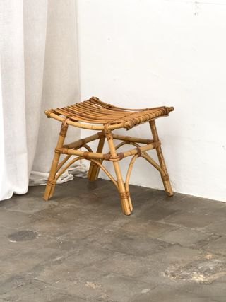 Prezzo unitario. 4 unità disponibili. Sgabello in stile vintage anni '60, realizzato con materiali naturali. Design organico e leggero con uno stile molto mediterraneo. Gambe in canapa intrecciata per una maggiore stabilità. Finitura artigianale. Instagram: @bartuistupinod. vintage retro design sedia poltrone credenza vitra fase Guillemaus, AG Barcelona, Gae Aulenti, Magistretti, Lupella, Cassina, Knoll, Vitra, Fase Metalarte, Gastone Rinaldi Pop, space age, design, retro, mediterraneo, Coderch, Miguel Mila, tavolino, ausiliario, Tramo, mid century, modernista, organico, art deco, art nouveau