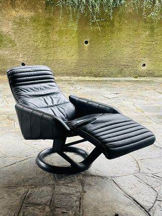 Poltrona reclinabile di Steen Ostergård per Bramin Møbler. Danimarca, anni '80. Struttura in metallo nero, rivestimento in pelle nera. Condizioni: originali ed eccellenti, senza macchie o odori. •Solo ritiro a mano o consegna concordata entro 200 km da Milano • IG @ateliermorestuff Alessi, Rosenthal, Hay, Flos, Artemide, Fontana Arte, Nemo, Driade, Foscarini, Oluce, Cassina, Cappellini, BBB, Knoll, Danese, Venini, Murano, Design, Modernariato, arredamento, ambiente, complementi...