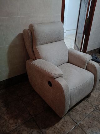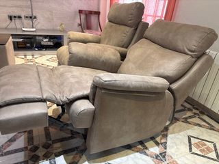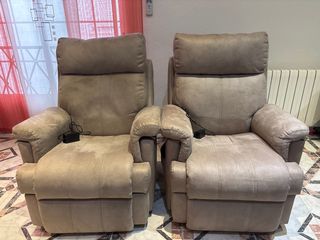 Coppia di comodi poltrone reclinabili elettriche in tessuto, di colore beige. Ideale per rilassarsi.\n- Meccanismo reclinabile.\n- Braccioli inclusi.\n- Perfetto stato.