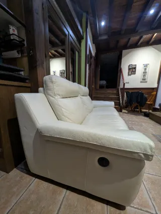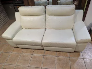 Due divani in pelle El Corte Inglés sono venduti in ottime condizioni insieme per 500€ o separatamente per 300€ ciascuno. Di prima mano, valgono 1000€ ciascuno. Sono del marchio «Losbu Sofas», poltrone reclinabili elettriche in pelle fatte a mano, bianco sporco, diverse posizioni. Vengono forniti con il libretto di istruzioni. Alcuni anni, quindi in perfette condizioni. Sono venduti tramite cambio di indirizzo. Misure: 85 cm da un lato all'altro, braccia più larghe, 105 cm di altezza e 75 cm di profondità.