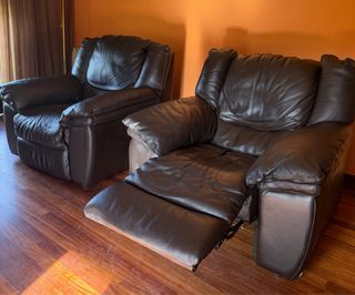 Vendo due poltrone reclinabili elettriche in pelle di colore marrone scuro, molto comode e spaziose. Ideali per il soggiorno o l'area relax. Si trovano in buone condizioni. Molto confortevoli per guardare la TV o riposare. Si vendono insieme o separatamente. Il prezzo è per ciascuna.