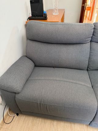 Comodo divano chaiselongue elettrico con un design moderno. - Rivestimento morbido al tatto. - Struttura robusta e durevole in metallo. - Le due postazioni non chaiselongue sono elettriche e reclinabili. Ogni postazione ha un pulsante indipendente. - Il tessuto è completamente sfoderabile, quindi lavabile in lavatrice. - La parte chaiselongue ha sotto un cassetto di grande capacità. Misura 1,65 m di lunghezza. - Le tre postazioni possono essere separate, poiché sono fissate da un'ancoraggio nella parte inferiore, facilitando il trasporto. Disponibile a metà aprile. La vendita è per un cambio di domicilio.