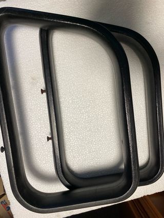 coppia di braccioli in pelle per sedie, poltrone ,divani etc . anche per i fai da te...materiale ferro/acciaio rivestito con imbottitura in pelle
