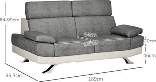 Divano 2 Posti in Finta Pelle PU con Poggiatesta R