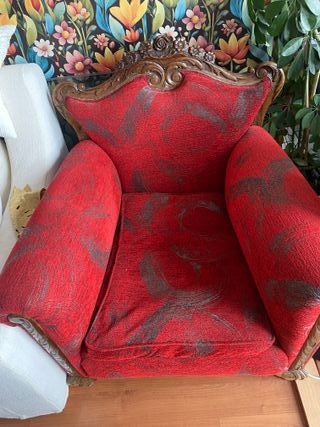 Bellissima poltrona in stile barocco. È un pezzo elegante e delicato, ideale per dare un tocco classico alla tua casa. - Struttura in legno. - Rivestito in velluto. Da restaurare. 2 unità 60 con spedizione inclusa