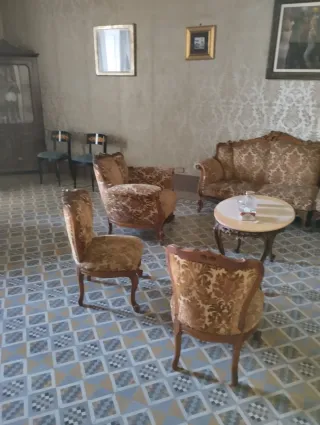 Vendo salotto classico di alta qualità, risalente a circa 1985, composto da: • 2 poltrone singole • 1 divano a 3 posti Mobili poco utilizzati, sempre collocati in un salone di rappresentanza praticamente inutilizzato. • Struttura in vero legno massello, solida e ben conservata • Stile classico ispirato al Luigi XV / barocco, con intagli decorativi • Tappezzeria originale in tessuto damascato color oro, in ottime condizioni • Sedute comode, imbottiture integre • Nessun cedimento strutturale Non si tratta di mobili moderni o industriali, ma di arredo classico di qualità, tipico della buona produzione artigianale dell' epoca.