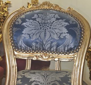 Poltroncina barocca tessuto blu e oro