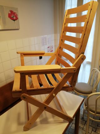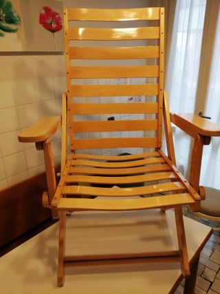 - Coppia di sdraio usate vintage anni ‘80 dei F.lli Reguitti, struttura in legno faggio chiaro, modernariato di design elegante, pieghevoli, marchio Reguitti impresso sul legno. - Misure sdraio: alt. 107 cm, largh. 60 cm, prof. 67 cm. - Inclusi coppia cuscini originali Reguitti, con imbottitura rifatta recentemente. - La coppia di sdraio è splendida e lucida e in ottime condizioni, “eccetto” le staffe di regolazione dello schienale. - ATTENZIONE > DA SOSTITUIRE le staffe di regolazione a cremagliera in plastica (è cotta e alcuni denti sono venuti via), su ambedue le sdraio (vedi foto). - NO SPEDIZIONE. Solo ritiro a mano Milano Sud