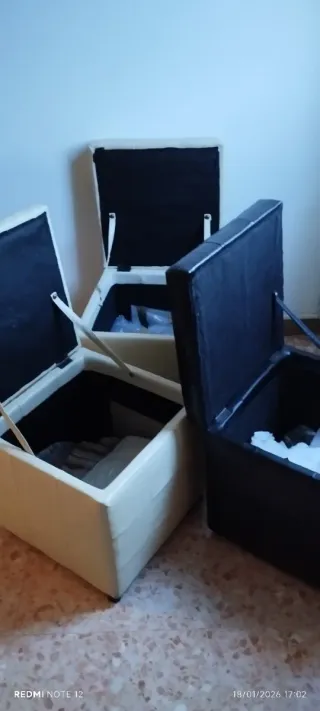 Set di tre pouf realizzati in ecopelle, perfetti per aggiungere un tocco di stile e funzionalità alla tua casa. - Colore panna e nero - Materiale: ecopelle Prezzo per uno 3 per 35€