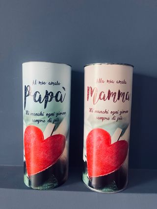 Set di due candele per cimitero, dedicate a Mamma e papà . altezza 20 cm diametro 8 cm