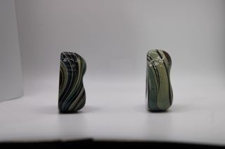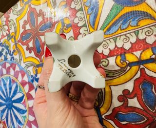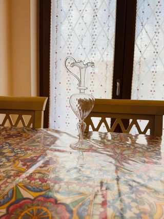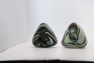 Coppia porta candela in vetro di murano, realizzati artigianalmente. Oggetto che cattura l'attenzione grazie alla sua bellezza unica. Le striature di blu, marrone e bianco si intrecciano in un raffinato gioco di luci e ombre, conferendo al pezzo una personalità distintiva. La forma delicata e la superficie lucida sono il risultato di una lavorazione minuziosa, che rende questo oggetto non solo un semplice porta candela, ma anche una piccola opera d'arte che arricchisce qualsiasi ambiente. Caratteristiche e Dimensioni: Altezza: 8 cm Larghezza: 8 cm Profondità: 6 cm