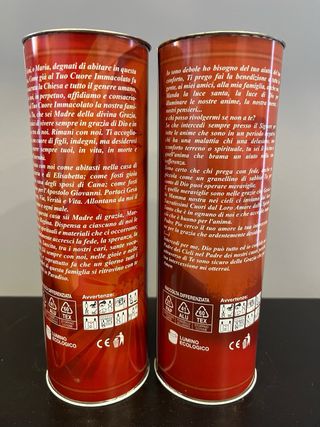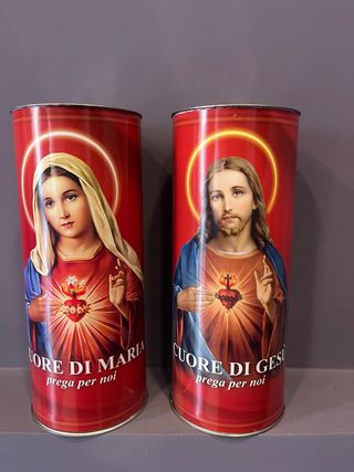 Coppia di candele votive per cimitero, con immagini del Sacro Cuore di Gesù e del Cuore Immacolato di Maria. Durata circa 4 giorni. altezza 20 cm diametro 8 cm