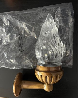 Lampada a parete compresa di fiamma votiva - Base in metallo finitura bronzo. - altezza totale 16 cm compresa di viti per montaggio