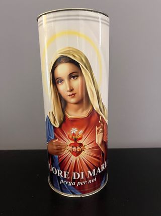 Candela decorativa con l'immagine della Madonna, ideale per il cimitero. - durata 4/5 gg circa - altezza 20 cm / diametro 8 cm