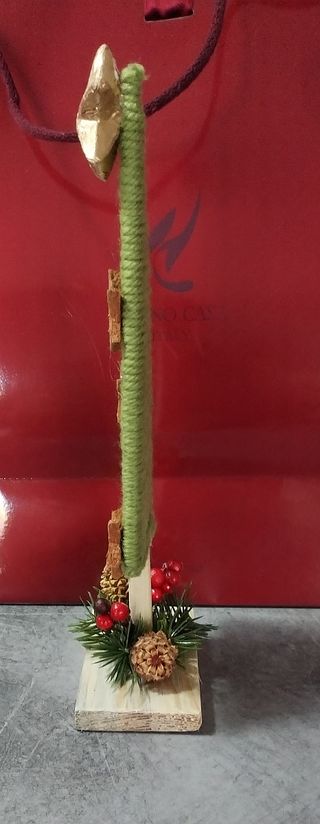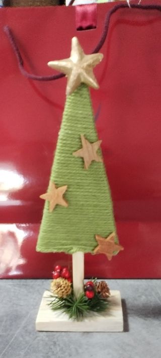 Delizioso alberello natalizio, perfetto per aggiungere un tocco festivo alla tua casa. - Decorato con stelle in legno. - Finitura in lana. - Base in legno.