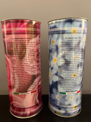 Coppia di candele decorative per cimitero. - durata circa 4/5 gg - altezza 20 cm / diametro 8 cm