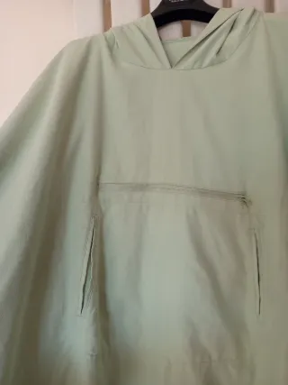 Accappatoio tipo poncho della Ikea, comodo e pratico. - Tasca frontale con zip. - Cappuccio integrato. Lunghezza 110 cm Larghezza 95 cm Con tasche Come nuovo In microfibra
