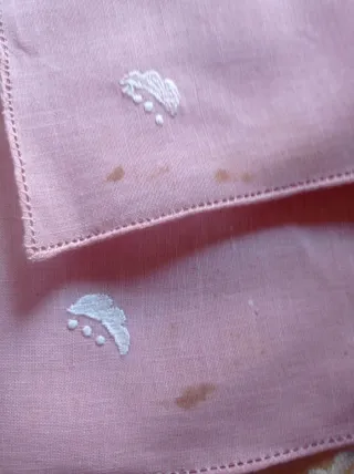 Delicati tovagliolini in puro lino, impreziositi da ricami fatti a mano. Perfetti per aggiungere un tocco di eleganza alla tavola. - Ricamo a forma di nuvola con gocce. - Bordi rifiniti con cucitura. - Tessuto in lino di alta qualità.