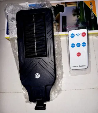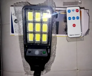 Set di 2 faretti a energia solare con pannello integrato, ideali per illuminare esterni. - Funzionamento a energia solare - Telecomando incluso per diverse modalità - Design moderno e resistente