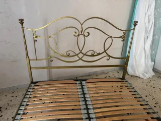 Elegante letto in ferro battuto con rete a doghe ortopediche. - Struttura in metallo dorato. - Rete a doghe in legno per un supporto ottimale.