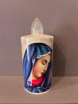 Candela elettrica cimitero Durata 60 gg ( 2 mesi ) Immagine Madonna Non necessita di pile Altezza 14 cm