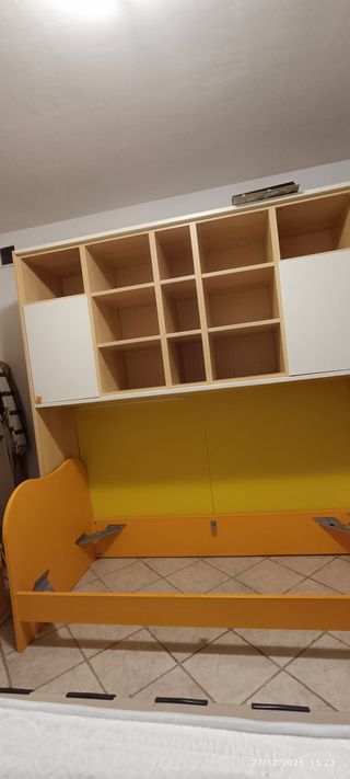 Armadio a ponte, letto, cassetti, rete, materasso
