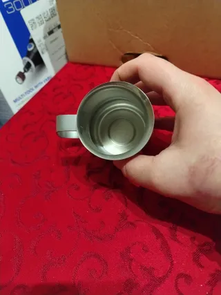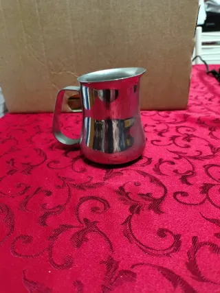 Piccola brocca in metallo, perfetta per servire panna o salse. - Design elegante e lucido. - Manico comodo da impugnare.