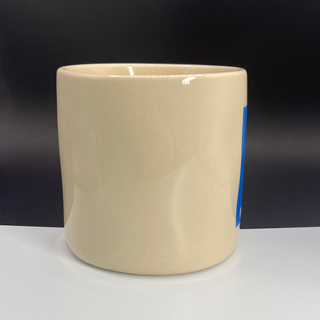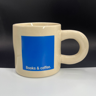Minimalist in form, bold in message. This beige ceramic mug combines smooth curves with a playful twist—literally. Featuring the words “Art,” on one side and “Books & coffee.” framed in a vivid blue square on the other, it celebrates slow mornings and creative routines. The oversized handle is not only eye-catching but makes it extra comfortable to hold. Perfect for sipping your favorite brew while sketching, journaling, or getting lost in a novel. Details: Material: Glazed ceramic Color: Beige with blue print Text: “Art,” on one side; “Books & coffee.” inside blue square Weight: 300 g Handle: Large curved grip for a cozy hold