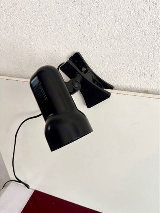 Faretto a pinza originale degli anni ‘80, prodotto in Italia da STILPLAST. Un oggetto pratico e funzionale dal design minimale e industriale, perfetto per ambienti moderni o spazi arredati in stile vintage. Caratteristiche: Produzione: STILPLAST, Made in Italy Epoca: anni ‘80 Colore: nero opaco Materiale: metallo e plastica resistente Misure: circa 20 x 20 cm Attacco E14 (lampadina non inclusa) Pinza robusta con presa salda e orientabile Condizioni molto buone. Ideale come luce da scrivania, comodino o per angoli lettura in stile retrò-industriale.
