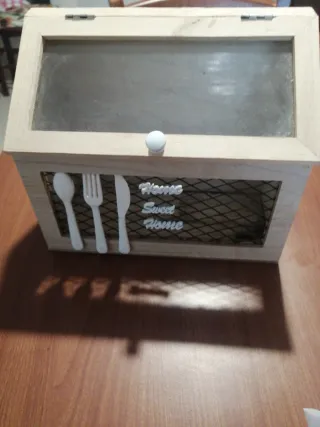 Elegante set da cucina con finiture in legno, vetro e rete metallica. Perfetto per organizzare utensili o come elemento decorativo. - Design rustico e funzionale. - Dettagli decorativi a forma di posate. - Scritta Home Sweet Home applicata.