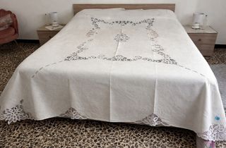 Copriletto Lino Ricamato a Mano Matrimoniale