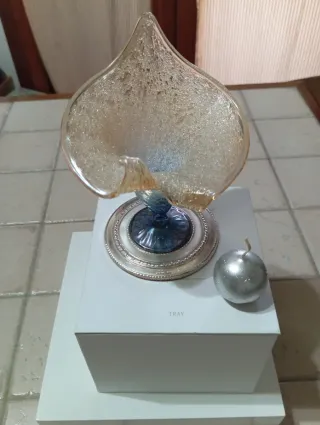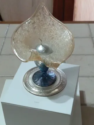 Grazioso, elegante e particolare porta candela con design a forma di fiore, in vetro di Murano, un pezzo raro per la tua casa. - Base decorata in argento.